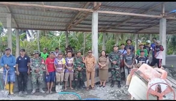 Camat Poso Pesisir Utara, Kabupaten Poso Sulawesi Tengah (Sulteng), Amrullah Malewa, gotong royong dan kolaborasi membangun bangunan tribun untuk persiapan upacara 17 agustus 2025.