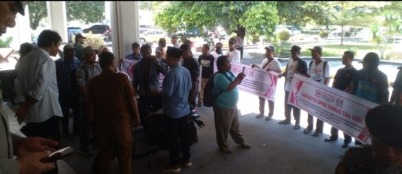 Massa aksi berjumlah kurang lebih 25 orang menyuarakan aspirasi mereka secara tertib dan damai di halaman Kantor DPRD Provinsi Sulawesi Tengah.